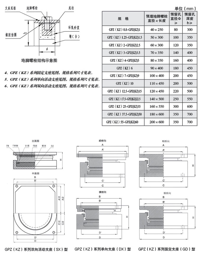 盆式橡膠支座),主要由上座板、消能板、密封圈、橡膠板、底盆和阻尼膠 圈等組成。GPZ(KZ)DX單向活動抗麻