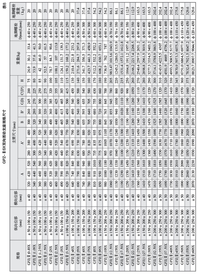a.雙向活動(dòng)支座(多向活動(dòng)支座):具有豎向承載、豎向轉(zhuǎn)動(dòng)和多向滑移性能,代號(hào)為SX;